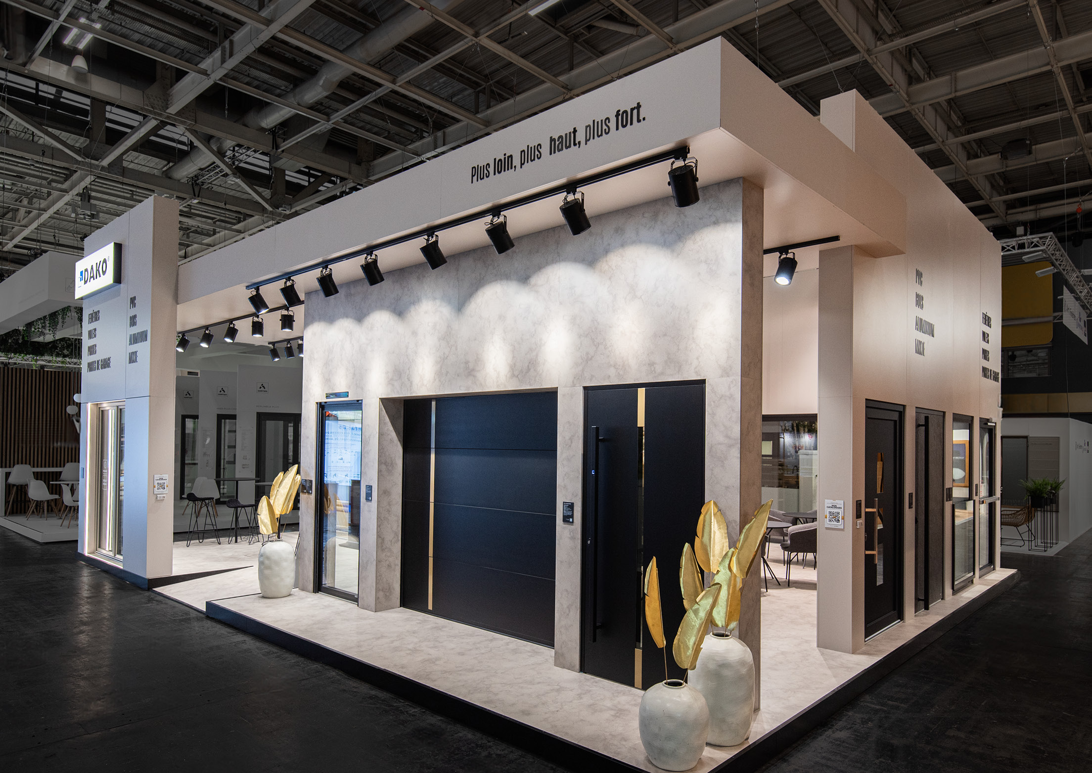 The refined material palette featured metallic finishes that caught and reflected light, adding dynamic elements to the clean, architectural forms. This thoughtful fusion of minimalism and luxury detailing transformed the functional exhibition space into an elevated brand...