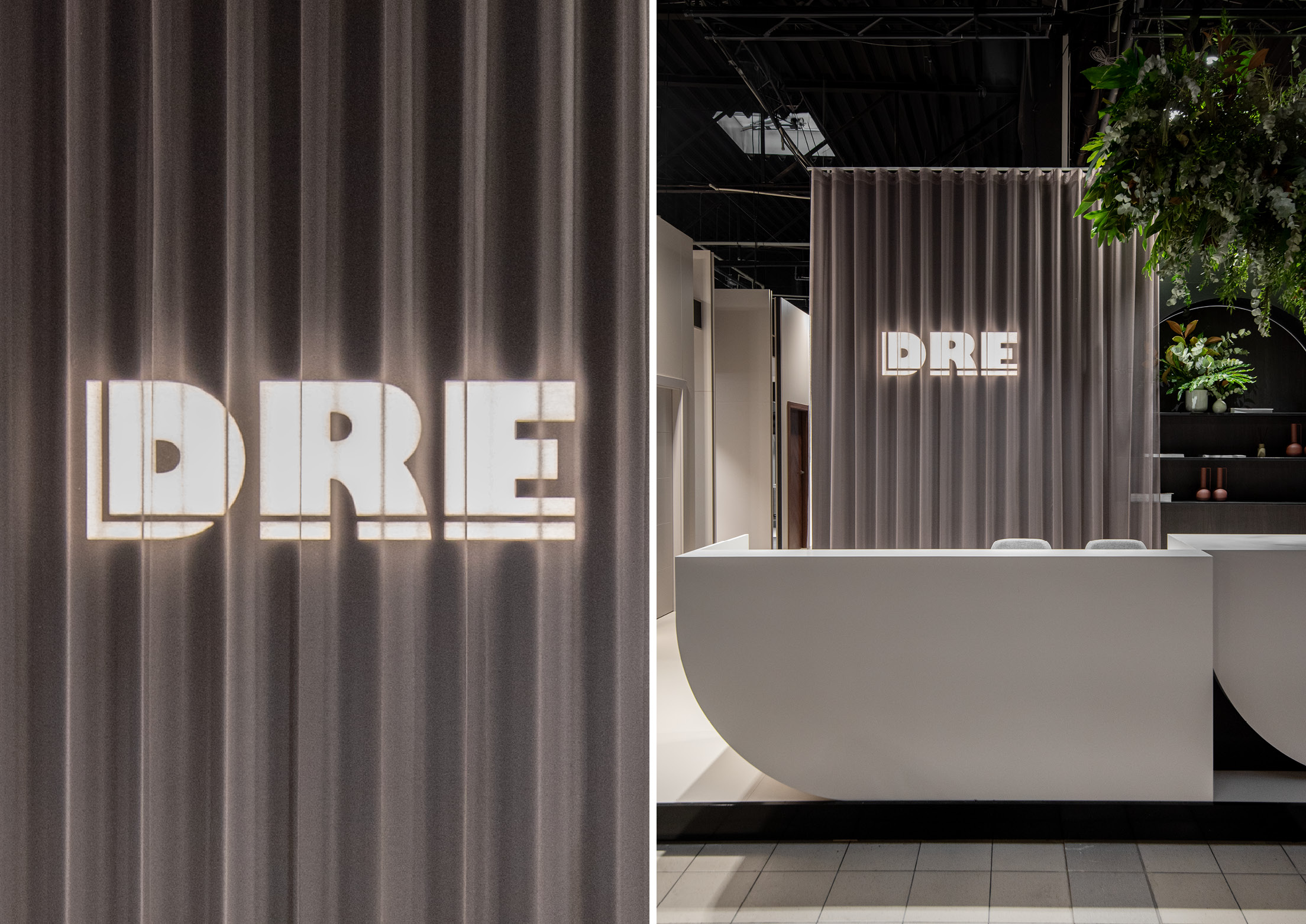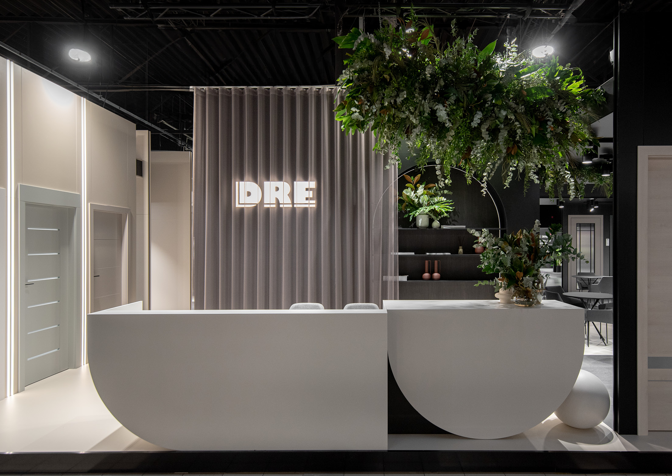 The stand was divided into two contrasting spaces – white and black – connected by an architectural portal, creating a striking space for door display. The contrast between these spaces created an ideal backdrop for showcasing the diverse door...