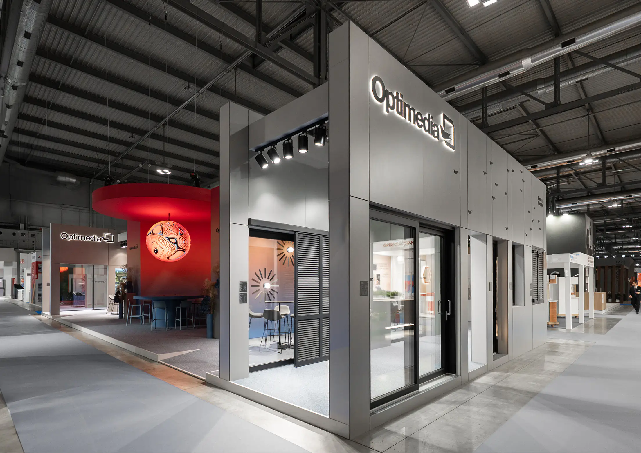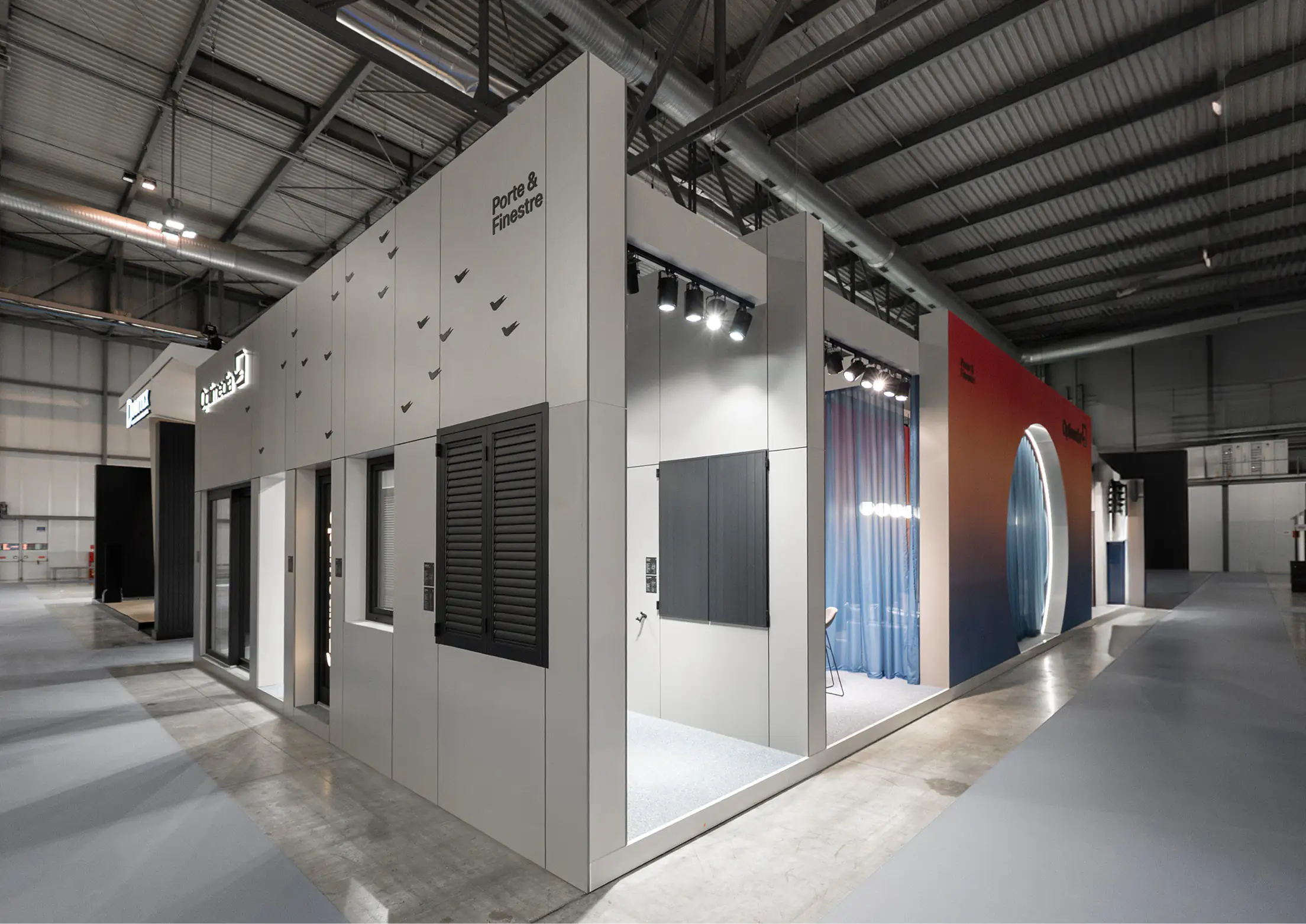 Gradientowy kolor, przytulna wnęka oraz wisząca nad błękitnym stołem lampa-słońce przyciągają zwiedzających do stoiska z siłą światła przywołującego ćmę. Z kolei okrągły portal intryguje i zachęca by spojrzeć co kryje się za jego zasłoną.
